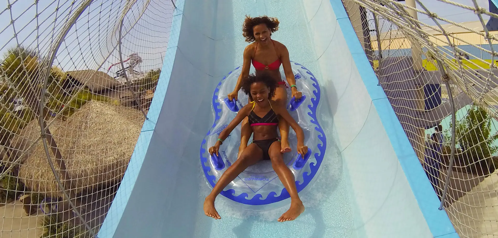 Experience the up and down thrills of a roller coaster on two different slides that utilize the patented "Master Blaster" technology to propel riders uphill with jets of water. Drop 20 feet then race through a series of dips, tunnels, twists and turns.