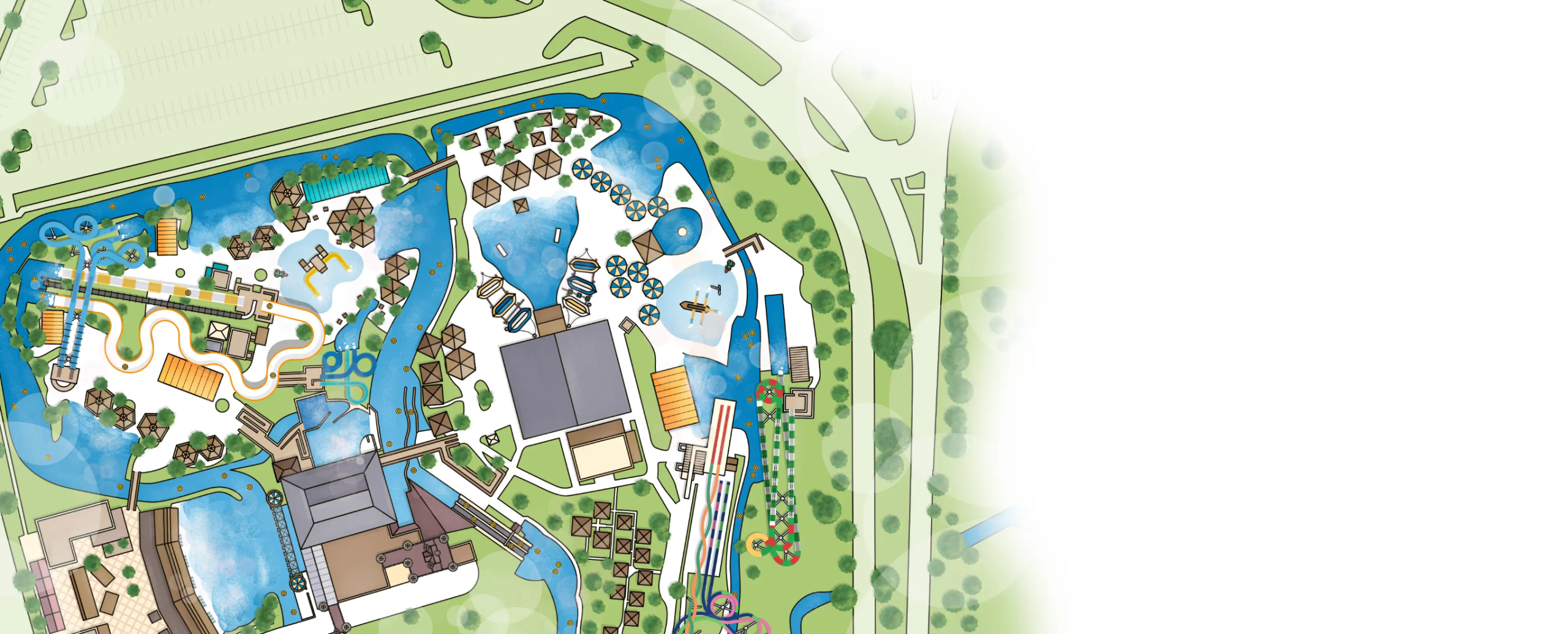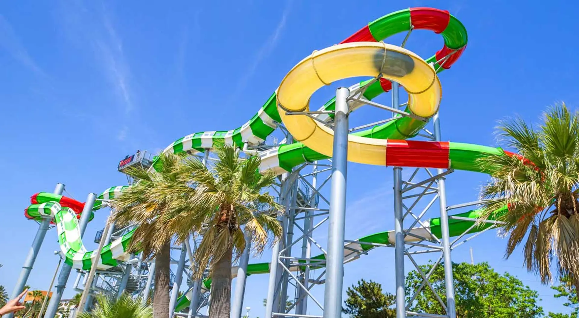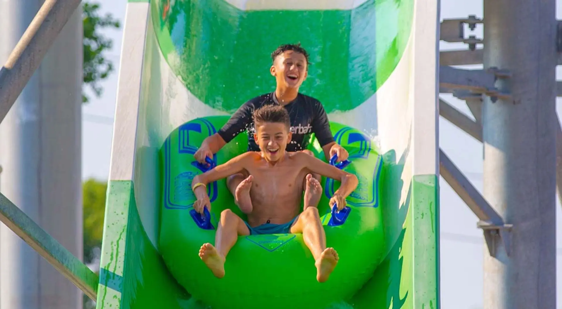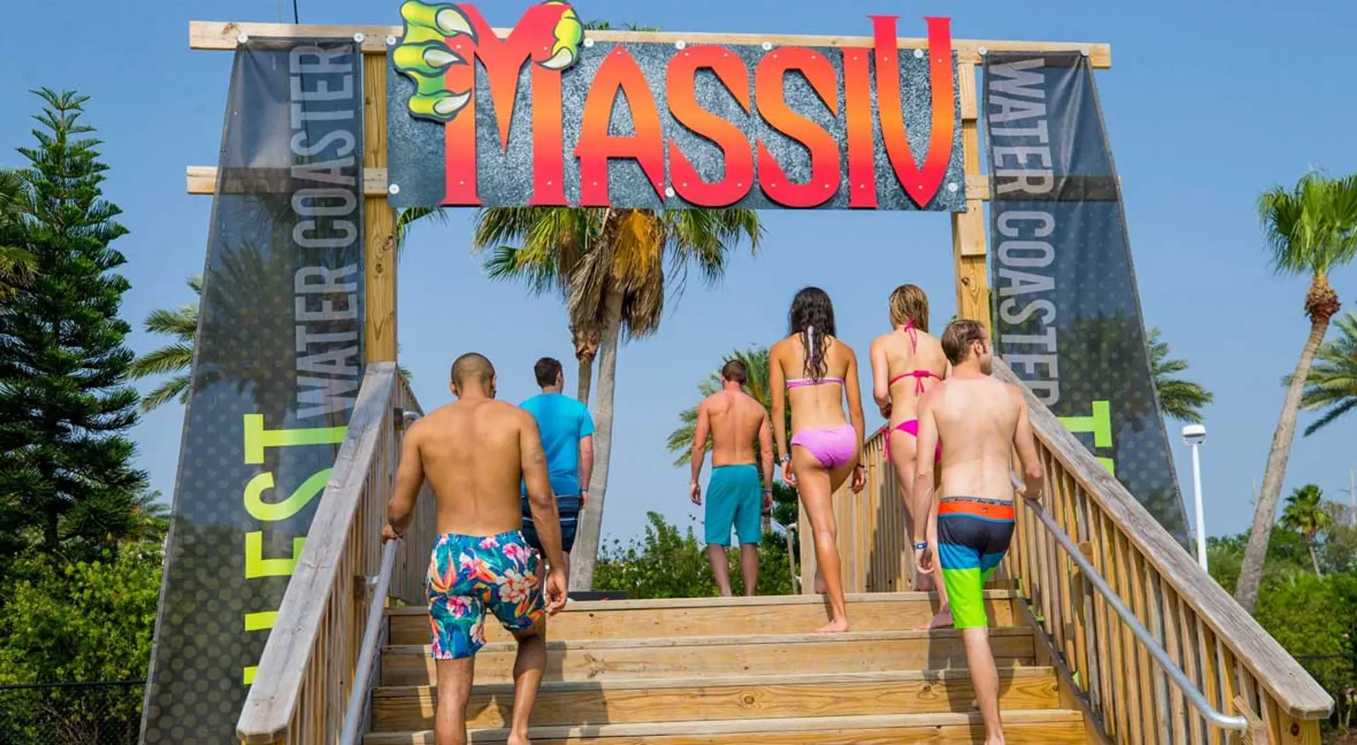 Feel the anticipation as you climb 123 steps to the top of the 81 foot, 6 3/4 inch high record-breaking water coaster. Twist, turn, drop, and splash for 926 feet (3 football fields). Zip through a mind-bending light show created by the slide itself, finally splashing down to a totally unique triple-drop ending in the landing pool. Breathtaking!