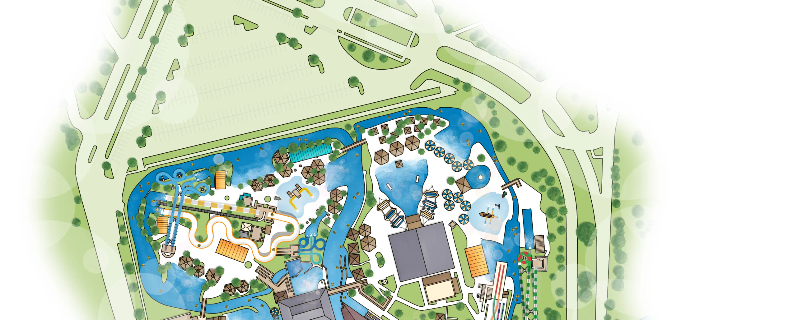 Splash and play in three-foot ocean-like waves at Shipwreck Harbor Wave Lagoon. Little ones will love the beached ship slide and a whimsical clamshell slide. Enormous lifeboat shade structures with additional lounging and picnic tables surround this wave-action pool.